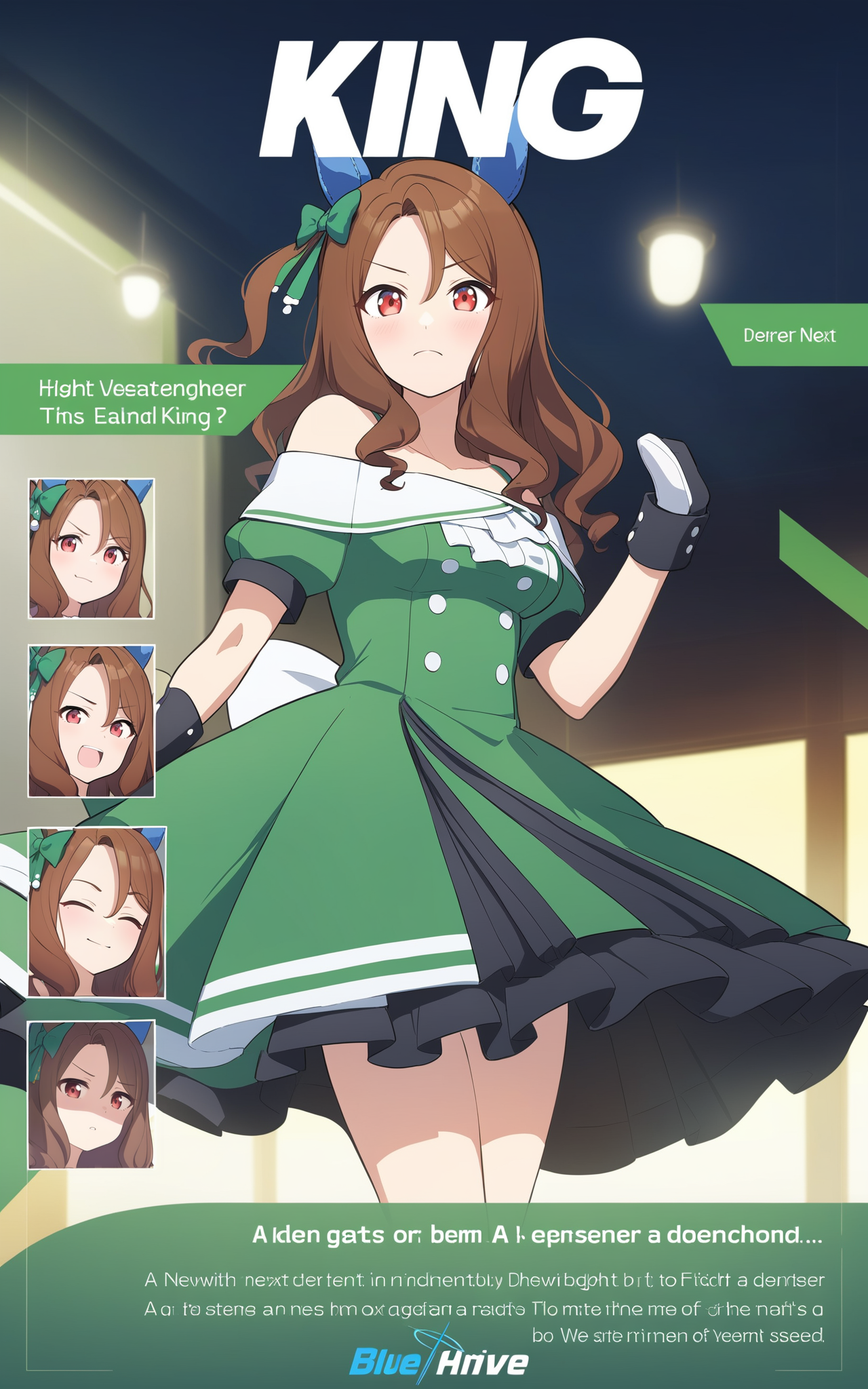 anime character poster with 4 different expressions of them, a english text title says **INSERT YOUR TITLE CHARA NAME HERE** in uppercase