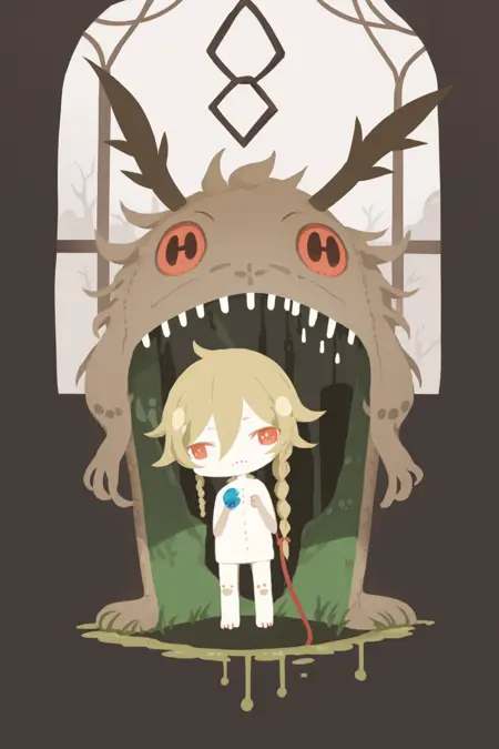 3. The model includes several styles, aside from the flat color on the cover, there are also many abstract and bizarre styles. You can refer to my sample images or try combining the following tags: 1other, no humans, monster, horror (theme), extra eyes, skull, eldritch abomination, bone, eyeball, blood, horns, tentacles, abstract, monster girl, colored skin, personification, spine, skeleton, surreal, pokemon (creature), antennae, animal focus, creature, bug.