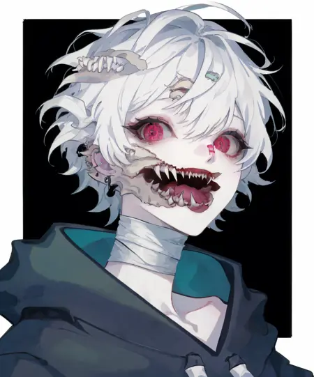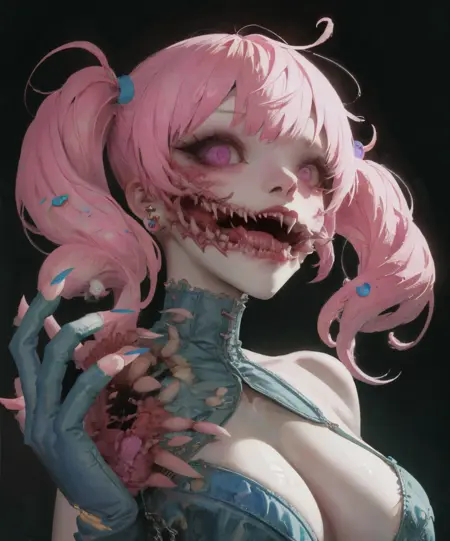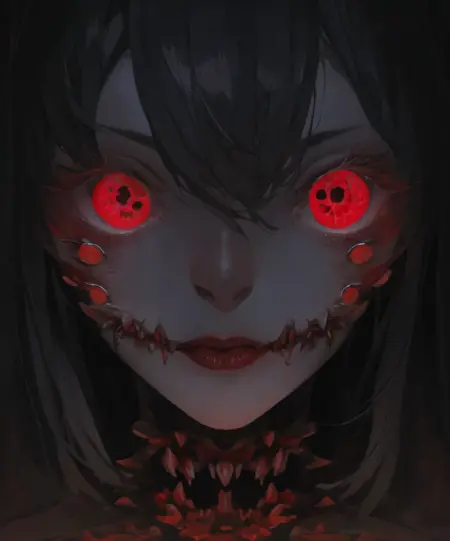 基于口中布满尖牙的多重口腔、多只眼睛、触手的添加以及氛围的营造,创造出受寄生的恐怖角色甚至超自然实体。简而言之,一种怪诞的怪物。