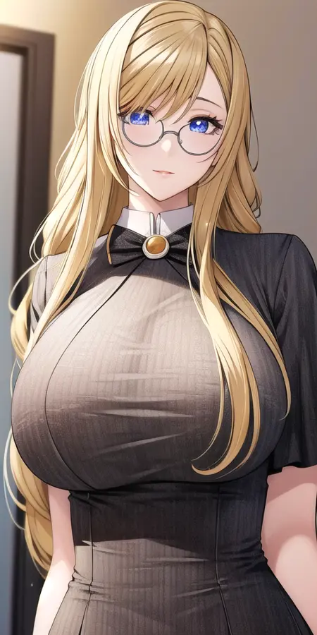 bespectacled_Round_eyewear: Just her using her glasses, she modifies her hairstyle a bit when doing so.