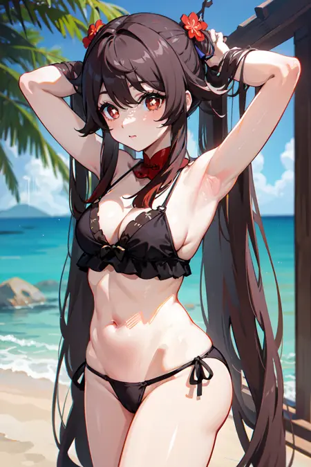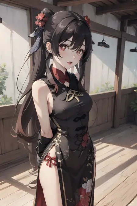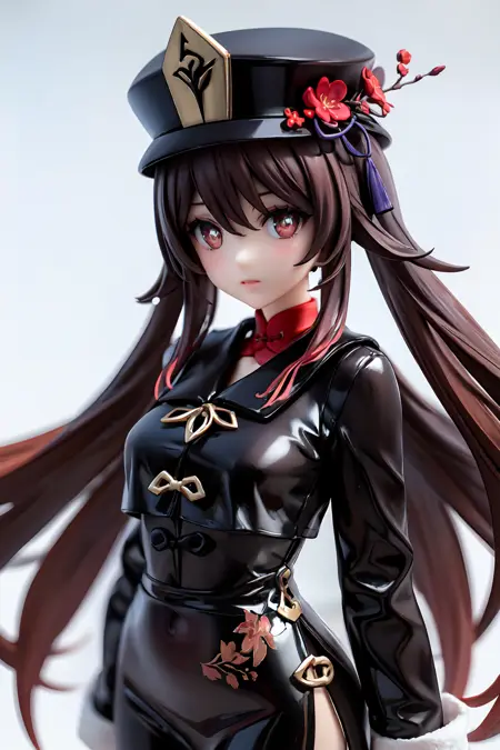 HuTao,1girl,solo,hat flower,hat,symbol-shaped pupils,chinese clothes,short_shorts,white socks,black footwear,