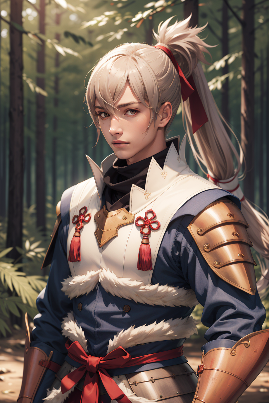 デフォルトの外見:defTakumi、ポニーテール、長い髪、手袋、鎧
