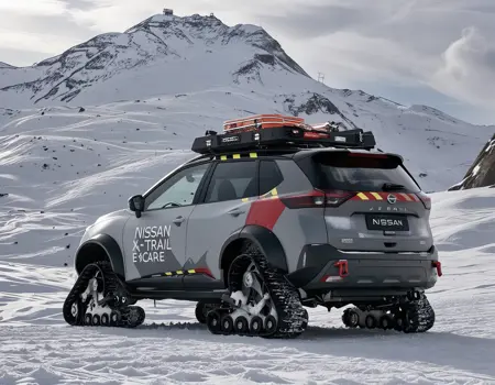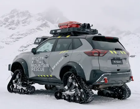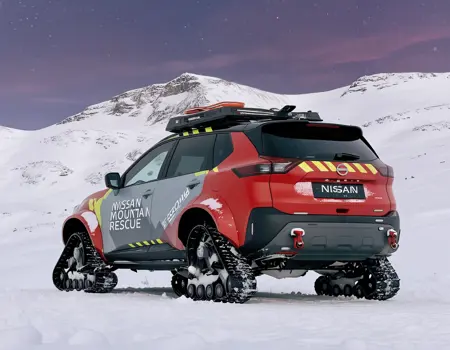 Nissan is showcasing the strength of its e-4ORCE all-wheel drive with the Nissan X-Trail Mountain Rescue. This special service vehicle demonstrates the technology's prowess even under the most challenging conditions. The Nissan X-Trail Mountain Rescue has been extensively modified for mountain rescue work, including the addition of snow chains. It's not just a vehicle, it's a testament to Nissan's commitment to performance and reliability in extreme environments.