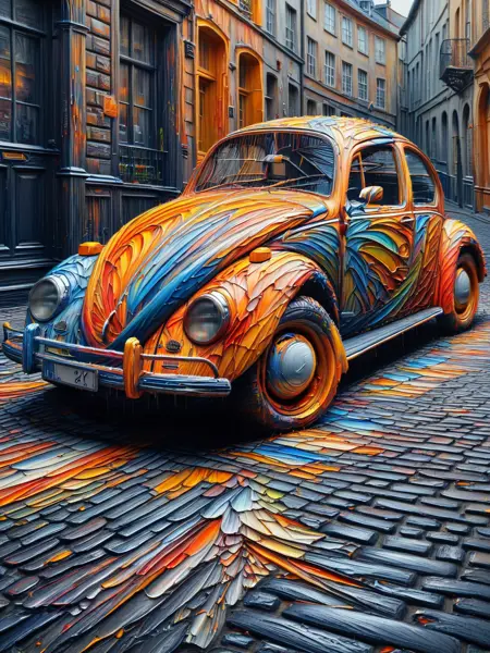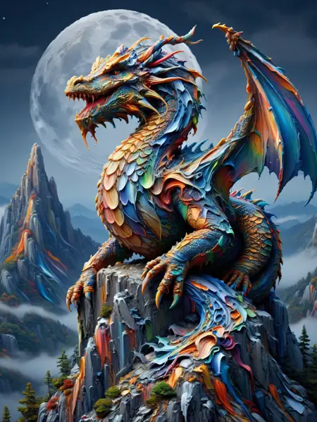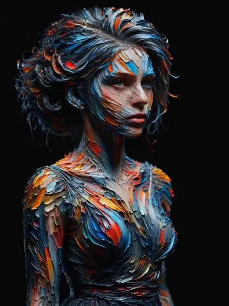 このLoRAのアイデアは、リアルな物体が厚く、質感のあるアクリル絵の具の筆致で覆われているように見せることです。その筆致は、表面に対して鮮やかで実在感があります。色とりどりの筆致が混在している一方で、被写体や物体に合った色も含まれているべきです。