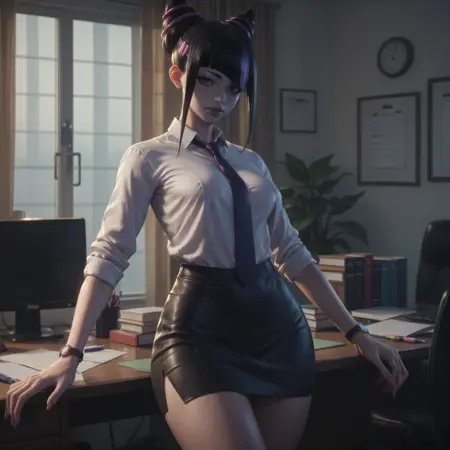 you can use trigger word "sfjuri" if you can't get her close, but not recommend to used it.