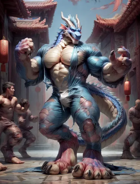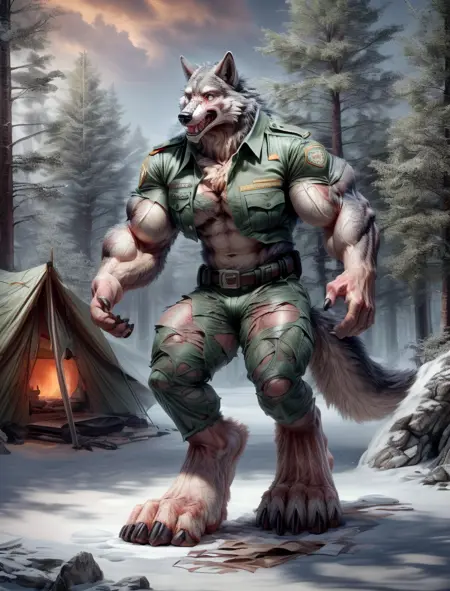 First attempt at using CivitAI's lora trainer with images of partially transformed anthro people. Trained only on men.
