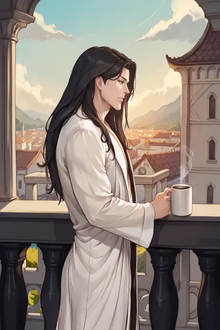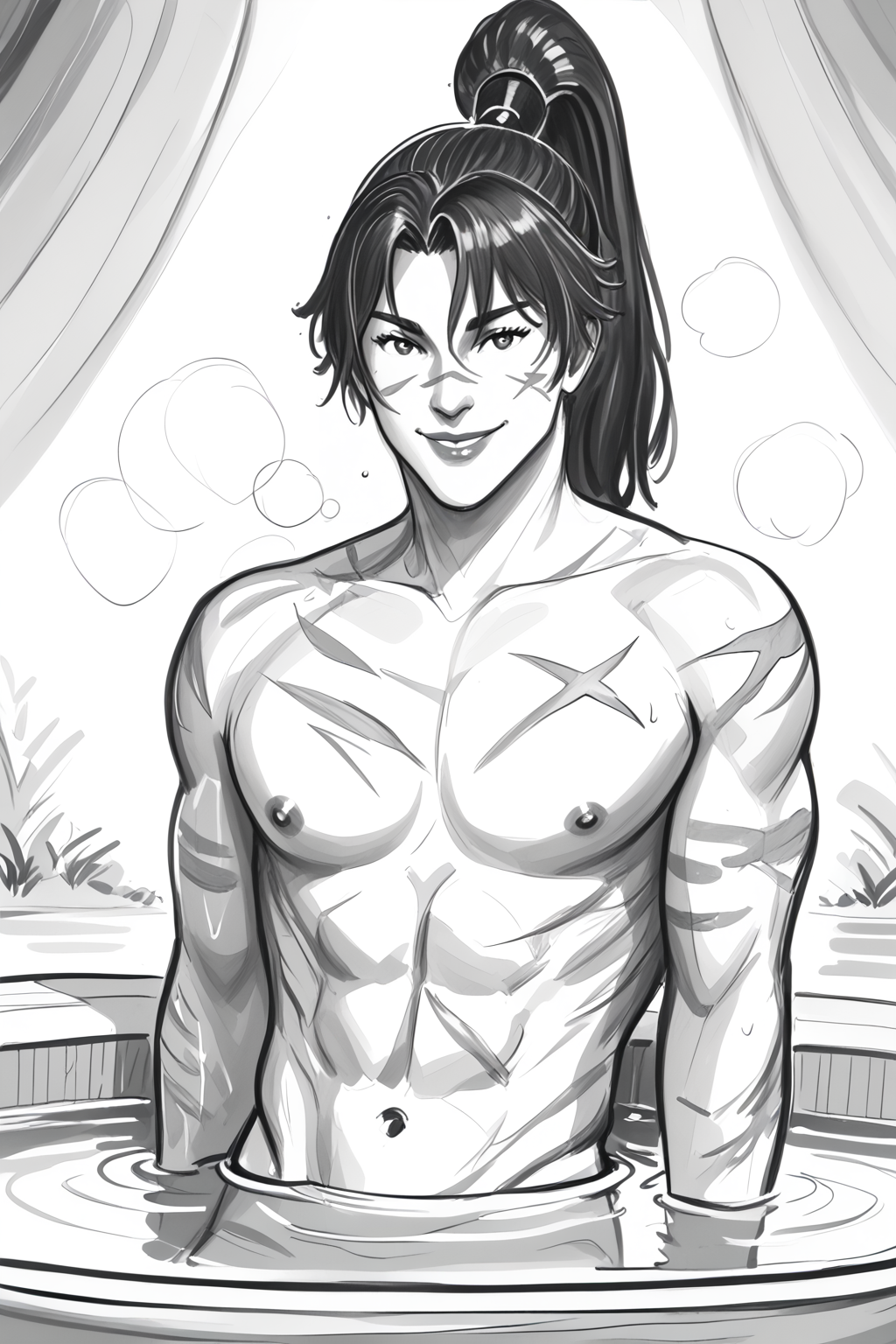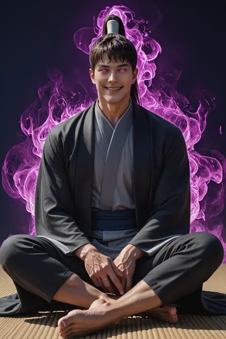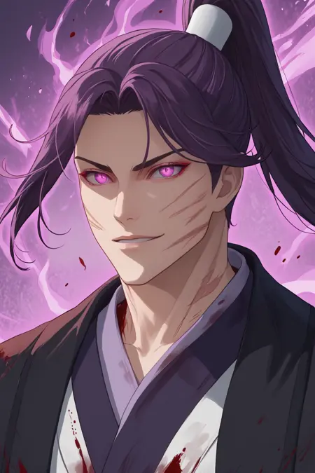 ストーリー中でのトリガー:jin、ポニーテール、短髪、前髪、着物、35歳、1boy