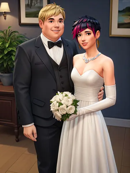 From the megahit life-simulation/god game/computer person torture simulator series, it's the pre-set characters that populate your towns, the townies from The Sims 4. These are and generally will be trained on screengrabs of the game or whatever official material exists of the townie.