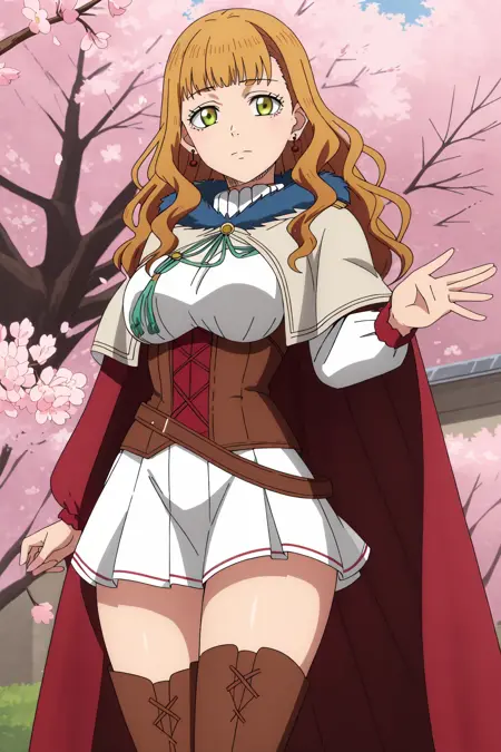 jewelry, earrings, cape, long sleeves, fur trim, white dress, skirt, capelet, corset, thighhighs, thigh boots,