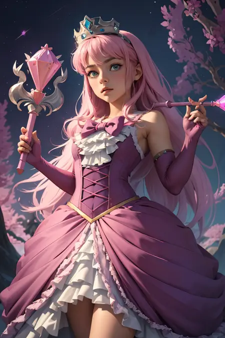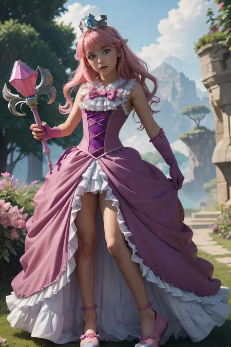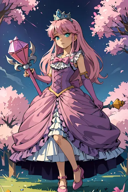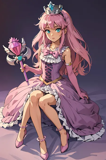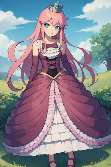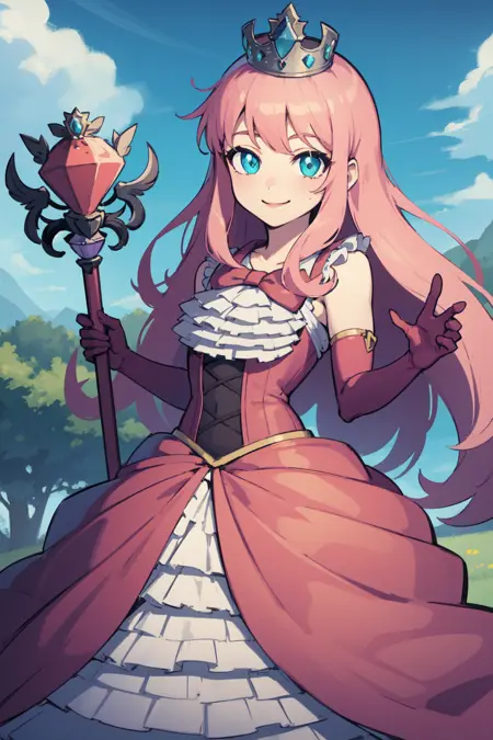 pterraria, aqua eyes, pink hair, crown, pink bow, pink dress, elbow gloves, frills