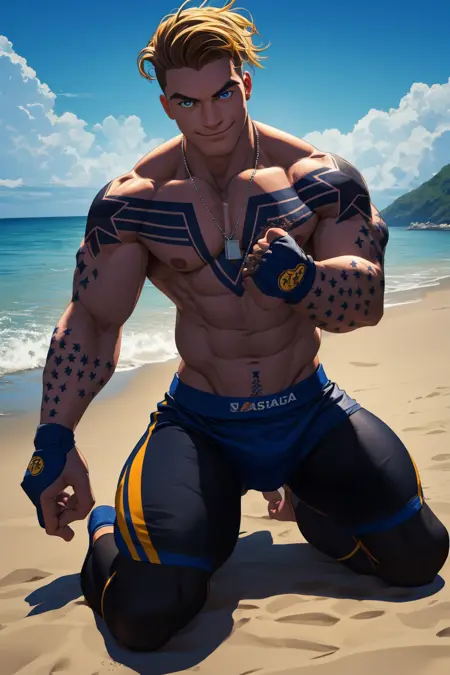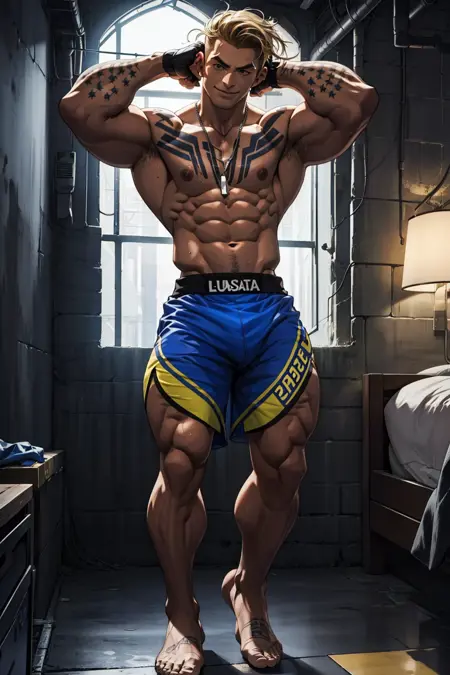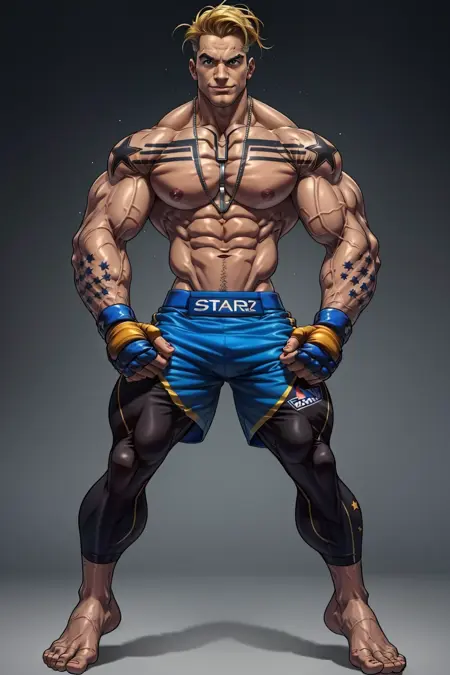 此外:鼻贴、面部疤痕、项链、纹身、星星纹身、格斗手套、拳击短裤、紧身裤,