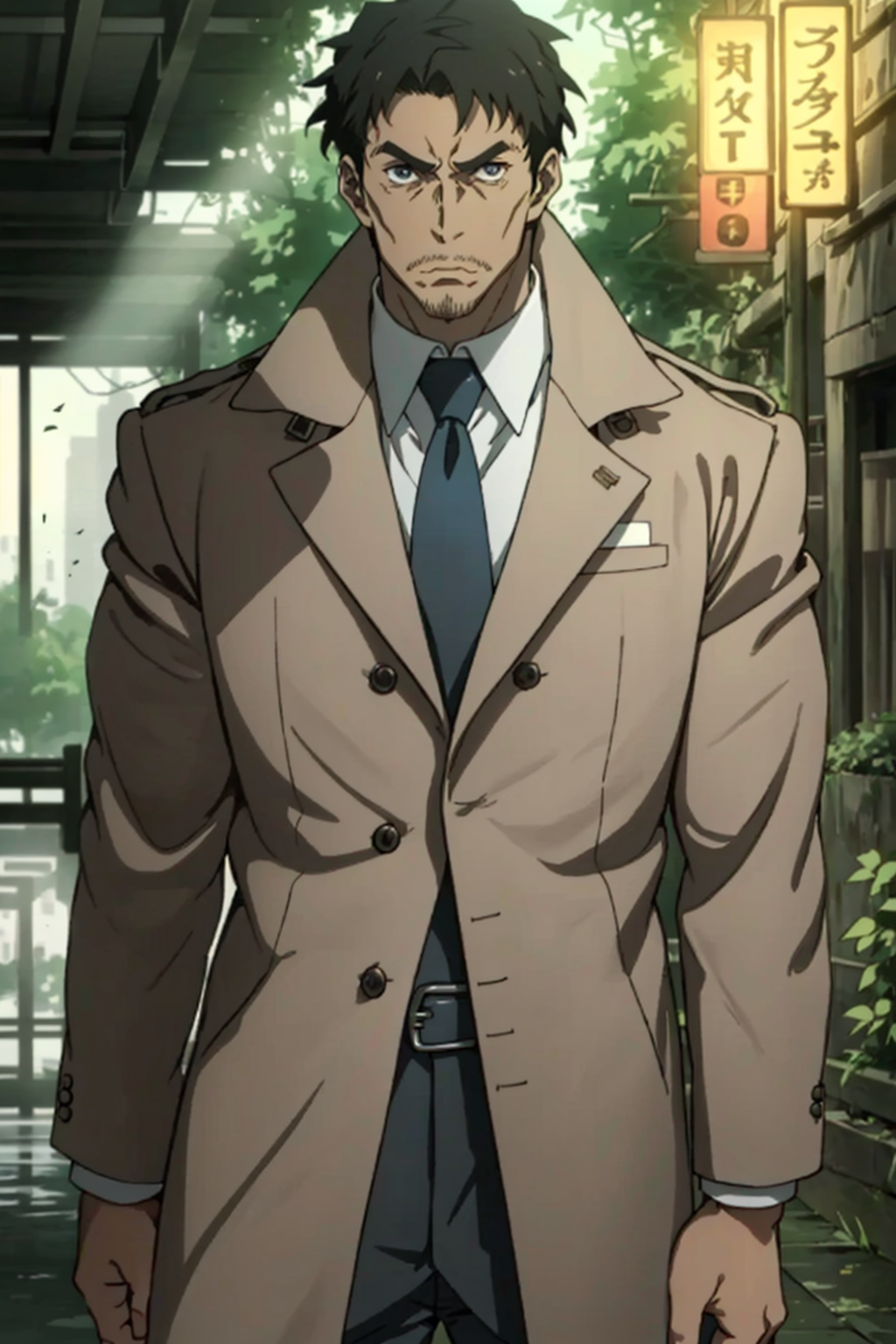 Negative Prompt: open coat, unbuttoned coat, exposed shirt hem, vest, jacket, belt, sweater, military uniform, thick moustache