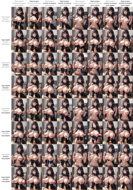 I wanted to create a lora where girls could lactate into condom, you know the masculine urge to lactate into condoms. So I tried but the results aren't good for classic generations (tiny training dataset AND really varied in the way the nipples and the condom behave) but it works okay for inpainting (sketch inpainting: a simple blob of colors like white permits to create the condom).