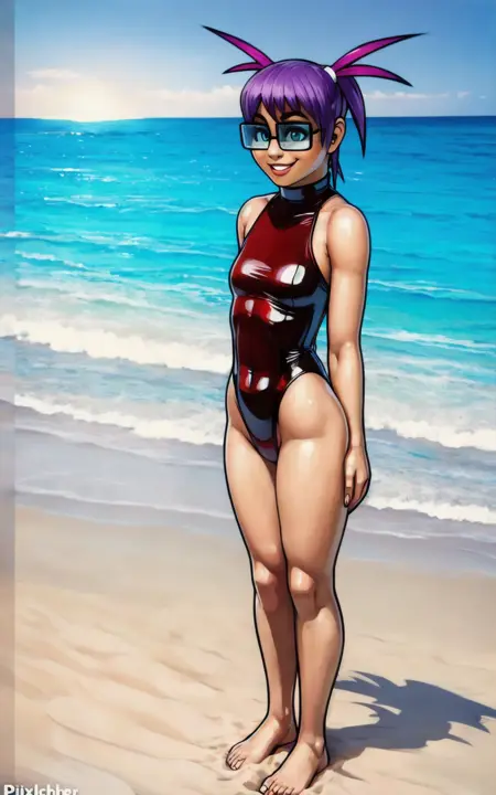 **Reinforcement Tags: **purple hair, short hair, multicolored hair, flat chest