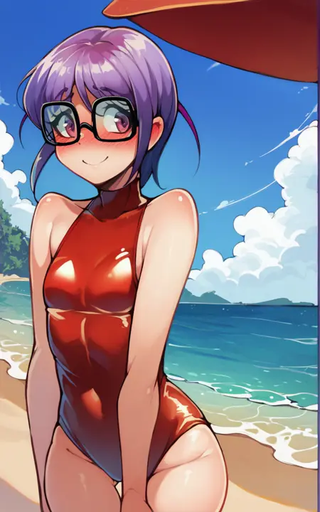 **Reinforcement Tags: **purple hair, short hair, multicolored hair, flat chest