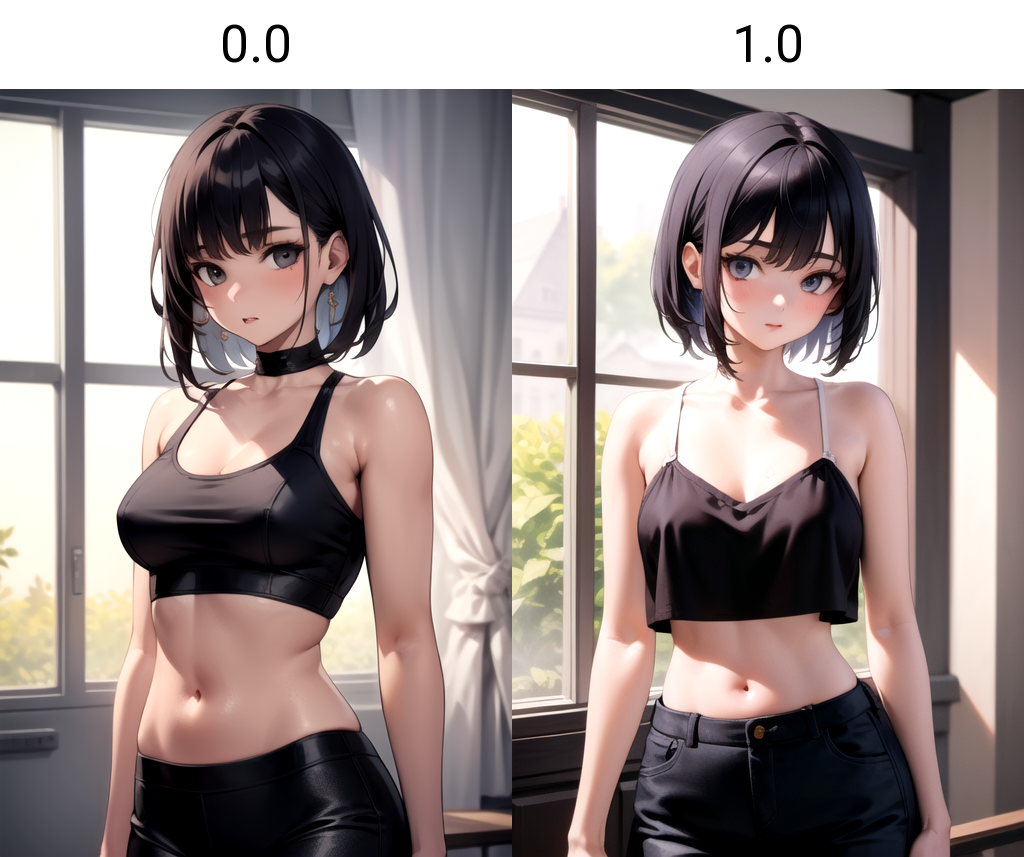 이 모델은 대부분의 모델이 일반적으로 생성하는 허벅지 길이의 옷이 아니라, 느슨하거나 오버사이즈된 crop top을 생성하는 데 초점을 맞춥니다. 매우 유연하며 거의 모든 옷과 함께 사용할 수 있습니다. 저는 700장 이상의 이미지 데이터 세트를 사용했습니다.