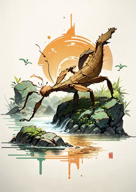 이걸로 다양한 기이한 막대 곤충을 만들 수 있습니다. 저는 사진을 가로 모드로 유지하면 가장 잘 작동한다고 생각합니다. 강도 1.0과 클립 스킵 2로 충분합니다.
