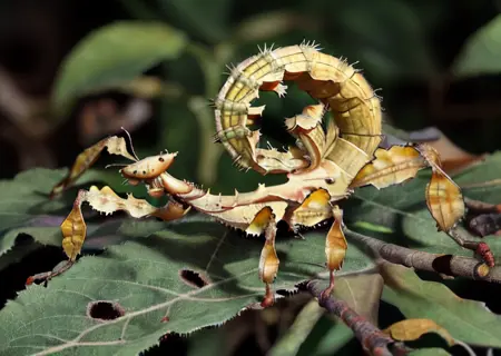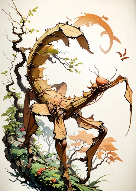 프롬프트 예시: spinyleafinsect, full body, solo, on a branch, head, eye, curly tail, macro photo