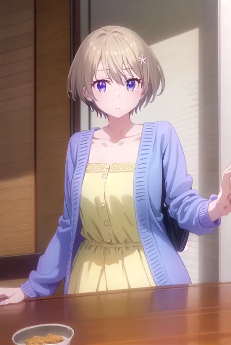 collarbone, cardigan, dress, yellow dress,