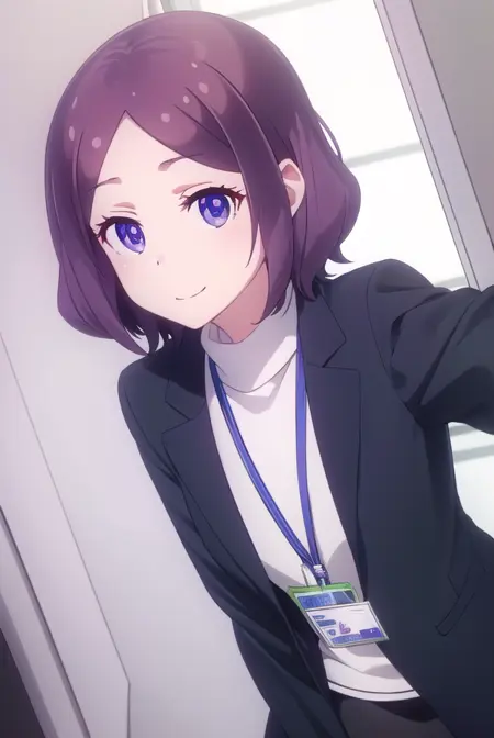 rin tooyama, short hair, brown hair, (purple eyes:1.1),