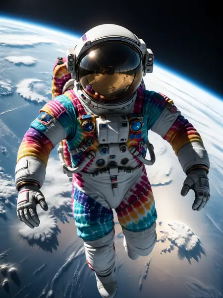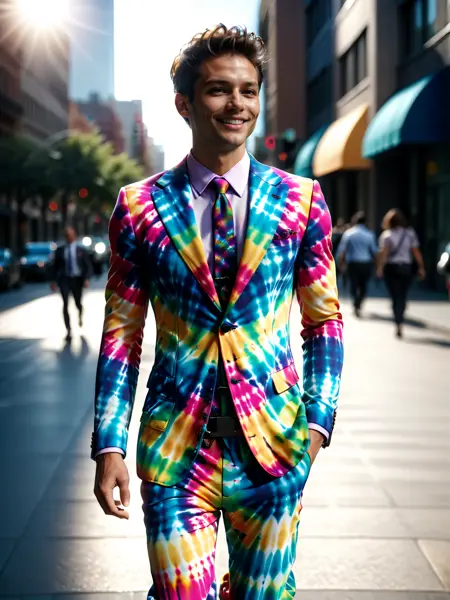 this Lora can generate a tie-dye pattern on virtually anything you associate the trigger word with, extending beyond just clothing or objects to include entire scenes.