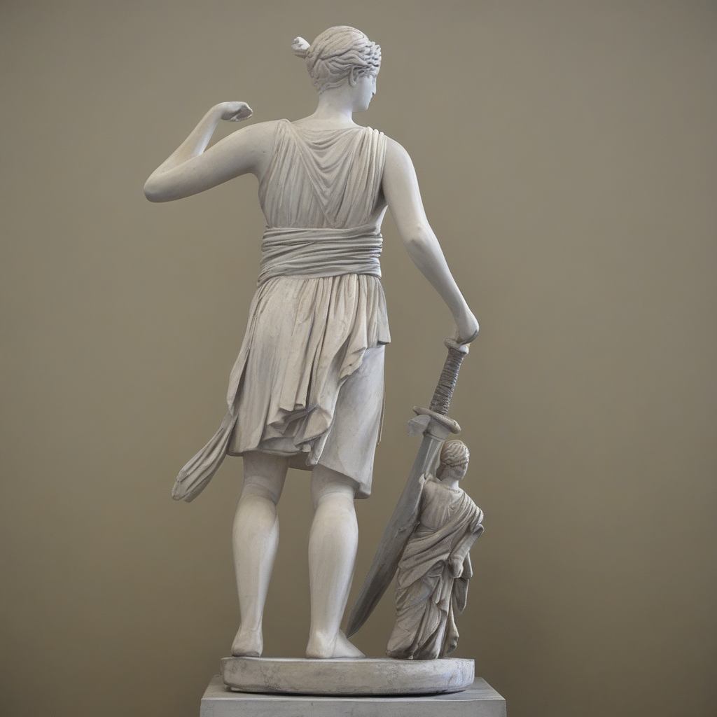 Diana is considered a virgin goddess and protector of childbirth. Historically, Diana made up a triad with two other Roman deities: Egeria the water nymph, her servant and assistant midwife; and Virbius, the woodland god.[3]