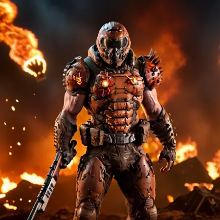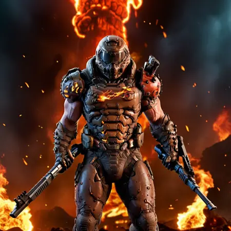 Doomguy is a fictional character and the protagonist of the Doom video game franchise of first-person shooters created by id Software. He was created by American video game designer John Romero. He was introduced as the player character in the original 1993 video game Doom. Within the Doom series, Doomguy is a demon hunter space marine dressed in green combat armor who rarely speaks onscreen, and his personality and backstory were intentionally vague to reinforce his role as a player avatar. In Doom Eternal, he is voiced by American voice actor Matthew Waterson, while Jason Kelley voices the character in that game's downloadable content The Ancient Gods: Part Two. He has appeared in several other games developed by id Software, including Quake Champions and Quake III Arena.
