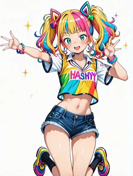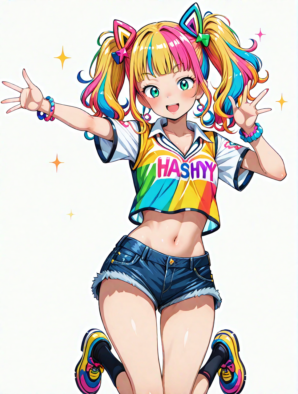 prompt : flashy gyaru, happy, showy,too many accessories, colorful ,kogal,