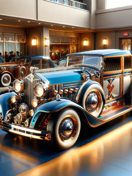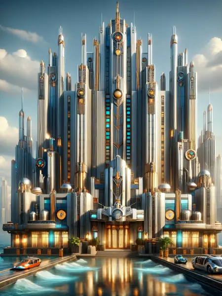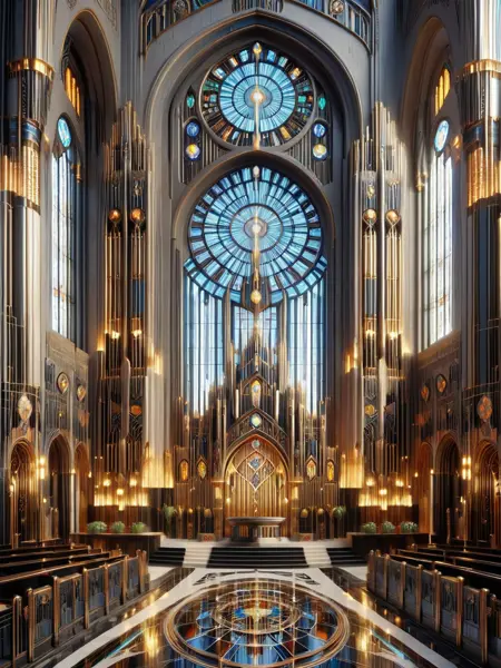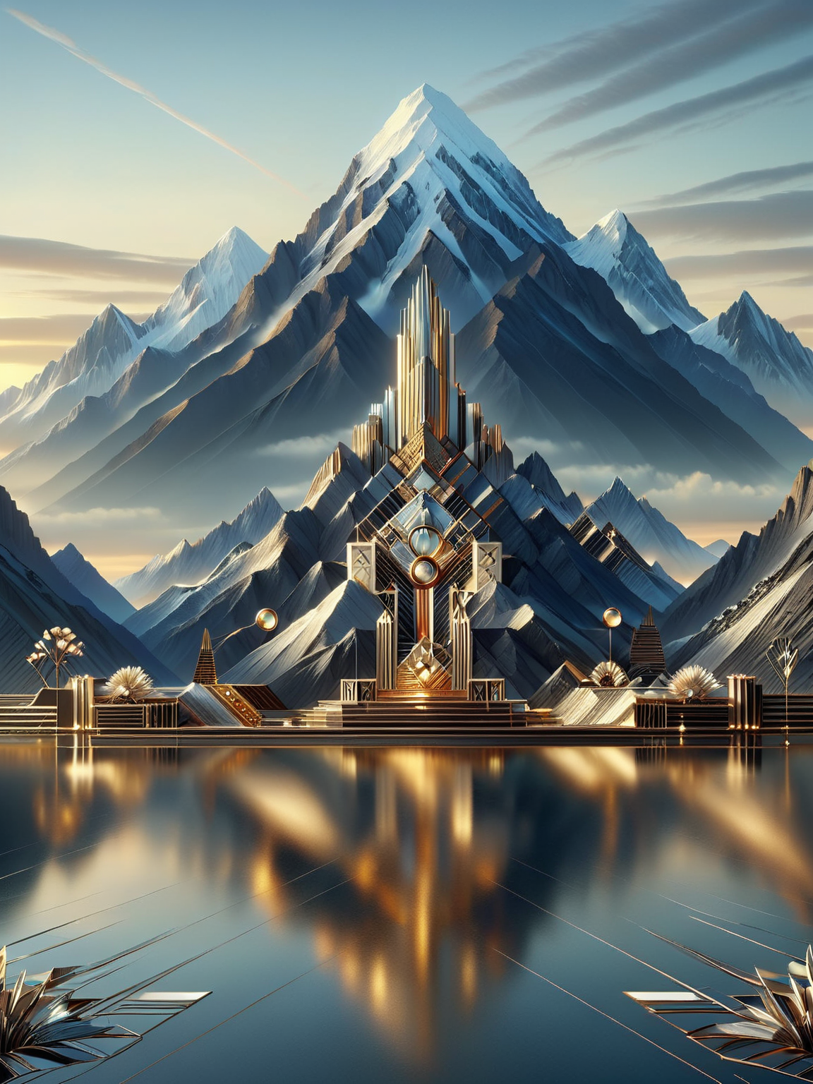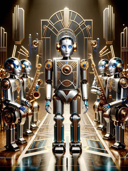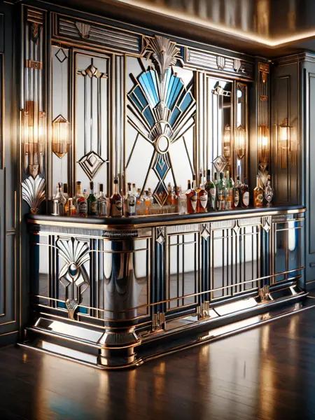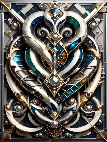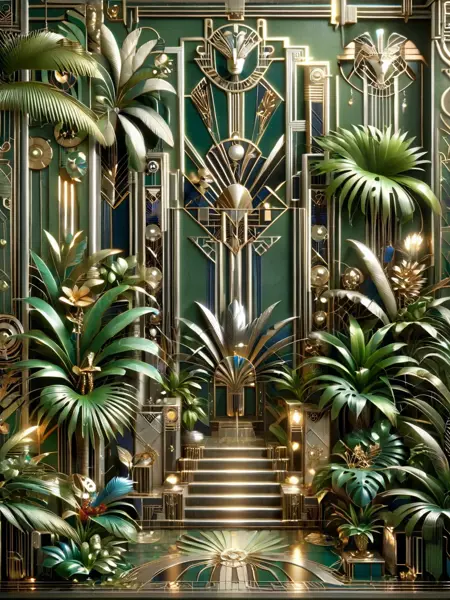 画像の照明はドラマチックで、鋭い影を落とし、アール・デコの美学を定義する繊細なディテールを強調します。