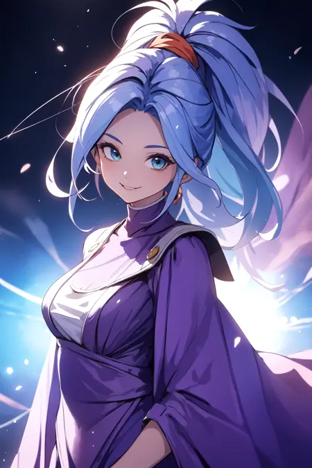 Trained using a mix of official artwork and fan arts using anyLora at CLIP 2. It should work with all anime based checkpoint. I was worried that the end result will not resemble the art style of the official artwork, but the resulting images look pretty good. As usual I focus on a making the LoRA flexible while retaining the character traits. It is pretty easy to put her in different clothing or mix her with other LoRAs. If you want her canon looks, you can optionally add "purple dress, earrings, jewelry, robe" to the prompt.