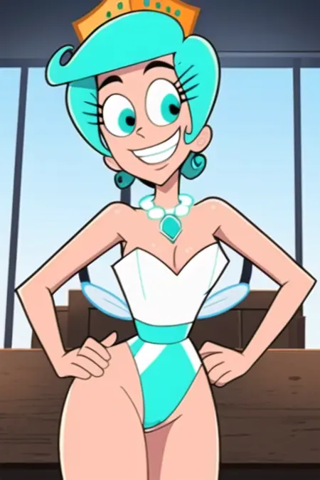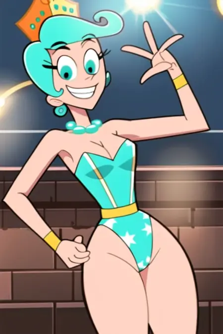 1girl, short hair, aqua hair, aqua eyes, leotard, bare shoulders, crown, jewelry