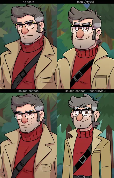 v1.0 NEW - A small update for v1.0 - Captions have been changed and improved, Trigger Word has also been changed, Some images have also been improved. Images with a style similar to Gravity Falls have been marked with the toon\(style\) token, so use this token to make the style look like GF and do not use score in this case! (31.08.2024)