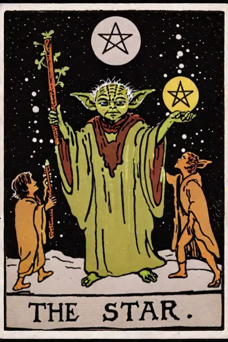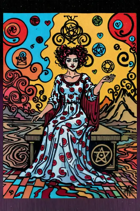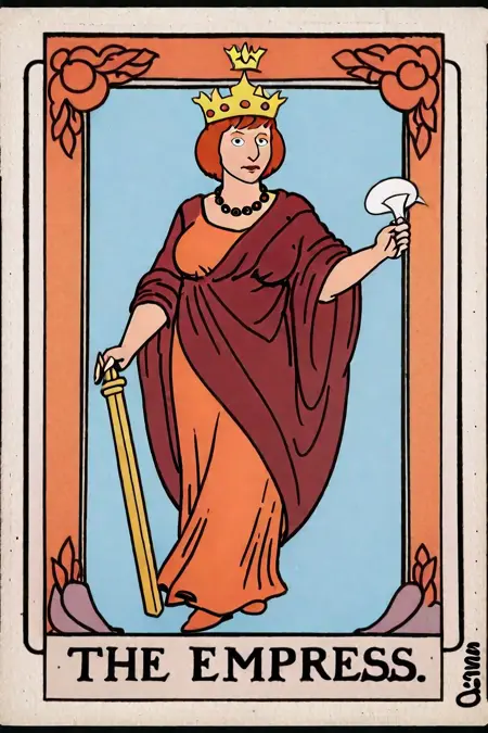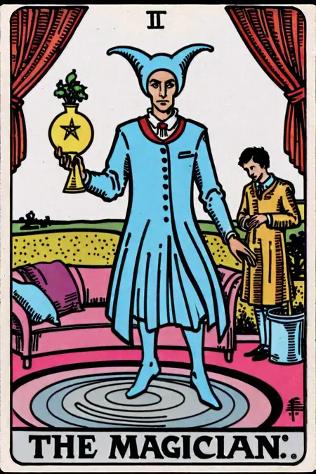 This LORA generates tarot cards in this style. It’s best used with portrait orientation. It works both with simple and complex prompts. When trying to generate Major Arcana or specific Minor Arcana cards, it works best to start your prompt with the specific card in mind.