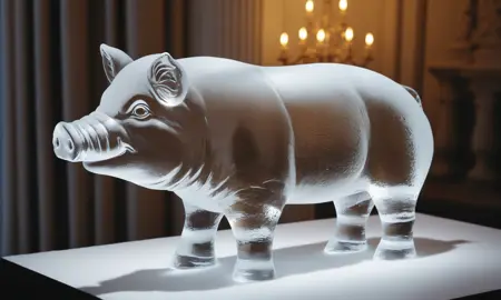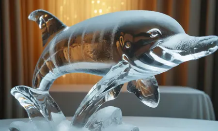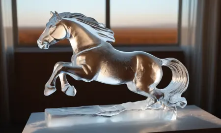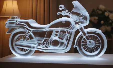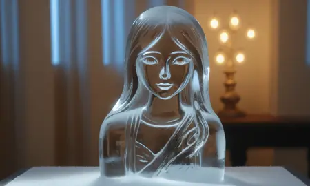 真正的冰雕像/制品艺术风格,一种使用冰作为原材料的现代艺术,也可以出人物,具体效果可以参考图片