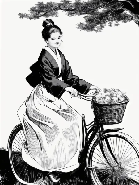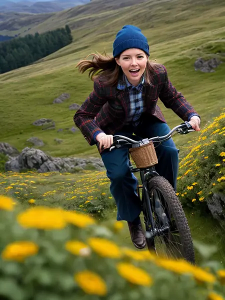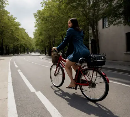 자전거의 기하학적 구조가 복잡하고, 다양한 각도, 방향, 초점 거리로 학습했기 때문에 약간 불안정합니다. 많은 리얼리스틱 체크포인트는 괜찮은 자전거 타는 여성 이미지를 생성하지만, 보통 여성들이 자전거와 함께 포즈를 취하는 장면에는 더 잘 맞습니다. 이 LoRA는 여성들이 실제로 자전거를 타는 장면을 잘 생성합니다. 또한, 많은 리얼리스틱 체크포인트 프롬프트는 여성이 레저용으로 자전거를 타는 장면을 생성합니다. 이 LoRA는 도시 환경에서 출퇴근하거나 친구를 만나는 여성들이 자전거를 타는 이미지를 잘 생성합니다. 이들은 헬멧과 릭라 복장을 입지 않으며 로드 자전거를 타지 않습니다.