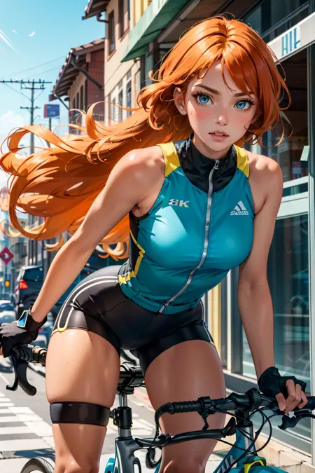 This is a bit squirrelly as the geometry of a bicycle is complex, and I trained on many different angles, orientations, and focal lengths. Many realistic checkpoints generate pretty good girls on bikes, but they are better at women posing with a bike rather than women riding bikes, This LORA does a good job of that. Also, many prompts on realistic checkpoints generate women riding bikes for recreation. This LORA generates good images of women riding bikes in a city setting, commuting to work, meeting friends etc. They aren't wearing helmets and lycra, and they aren't riding road bikes.