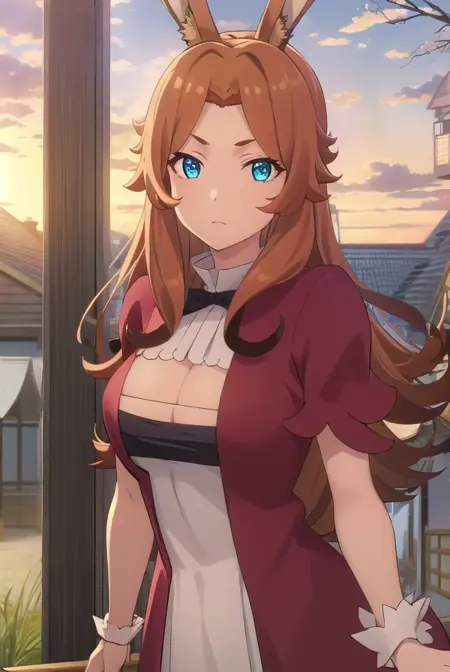 delilah, 长发, 棕发, 动物耳朵, 蓝眼睛, 兔耳朵,