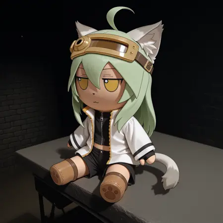 有用标签:1girl,兽耳女性,猫耳,尾巴,动物鼻子,绿发,长发,呆毛,闭眼,^ ^