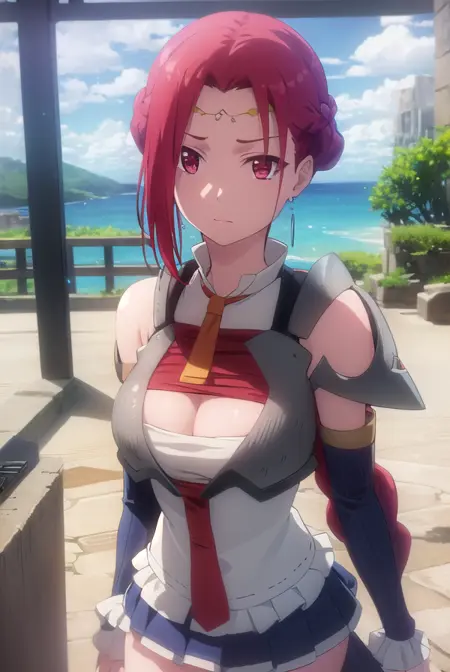 스커트, 히어스, 가슴 노출, 보석, 귀걸이, 분리된 소매, 망토, 갑옷, 가슴 노출 컷아웃, 원형 관모,