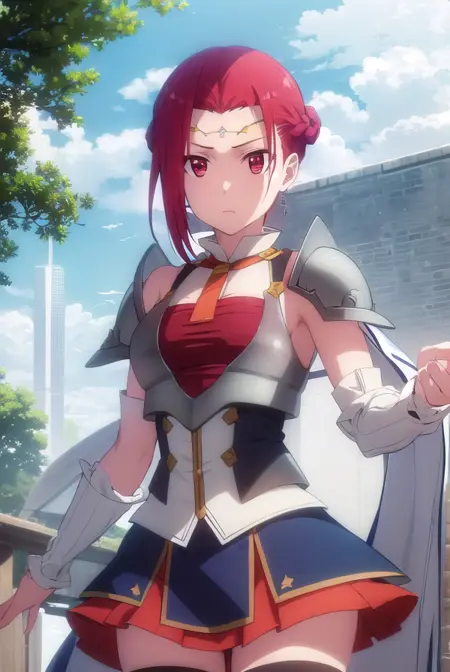 pina co lada, 단발, (빨간 눈:1.3), 빨간 머리, 땋은 머리, 단일 땋은 머리, 땋은 토끼꼬리,