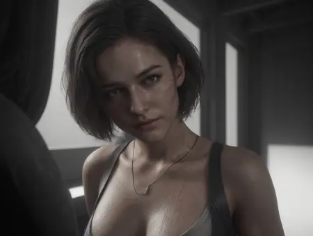 Prompts: jillre3, Jill Valentine sexual young woman, short hair, neckplace