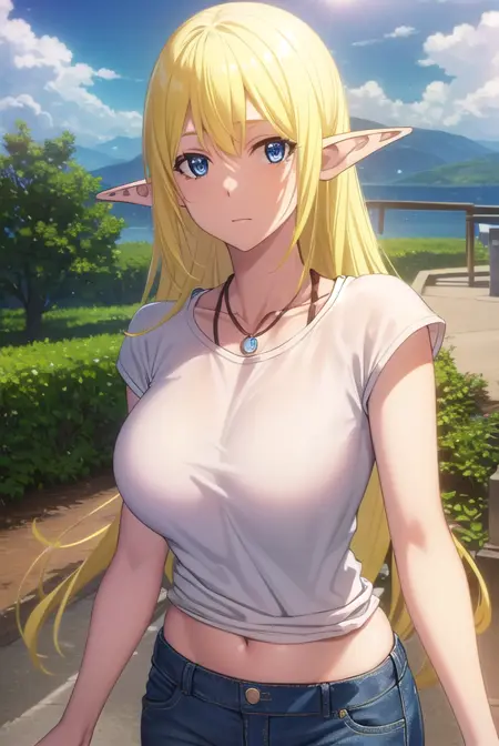tuka luna marceau、長い髪、金髪、とがった耳、エルフ、青い目、