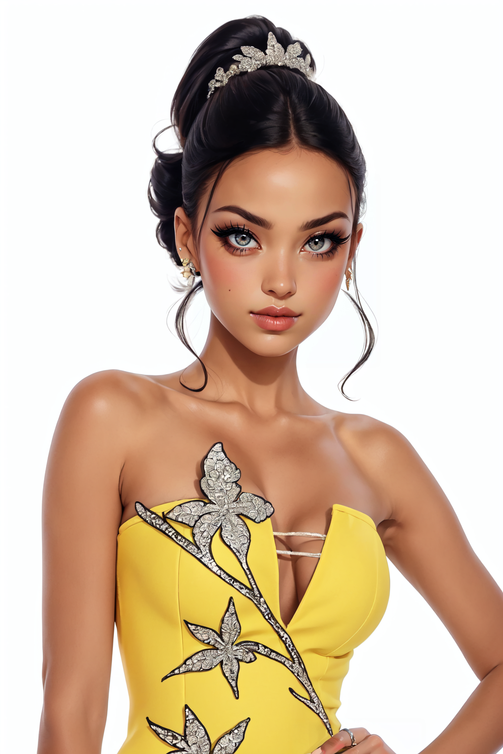These loras create a nice yellow dress with glittery flowers or vines.