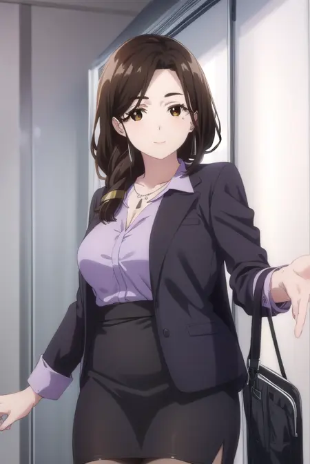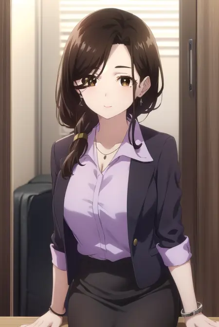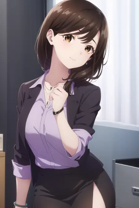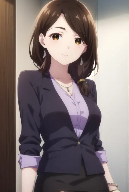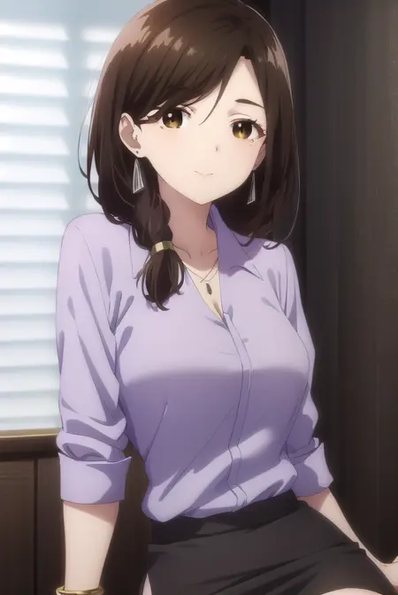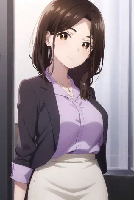 airi gotou,长发,棕色头发,(棕色眼睛:1.5),辫子,痣,眼下痣,头发垂肩,成熟女性,