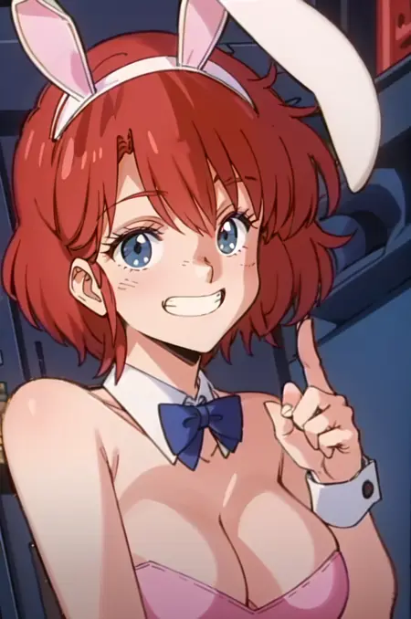 her armoured police uniform with headset, and also the pink bunny outfit (from ep 3)