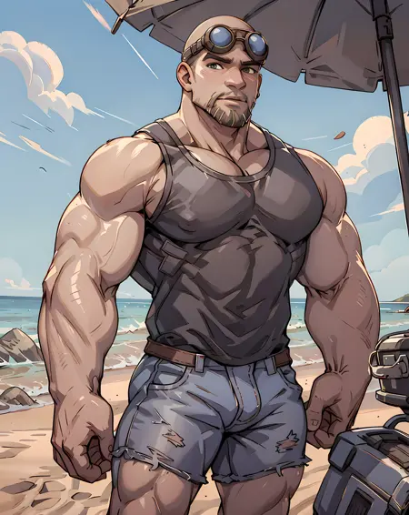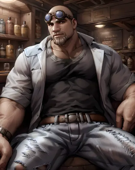 old_damon_baird, armor, goggles, bald, white beard, old, wrinkles