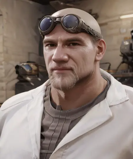 old_damon_baird, armor, goggles, bald, white beard, old, wrinkles