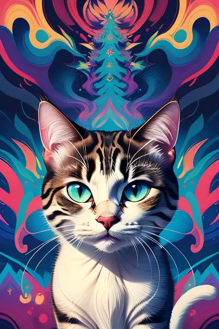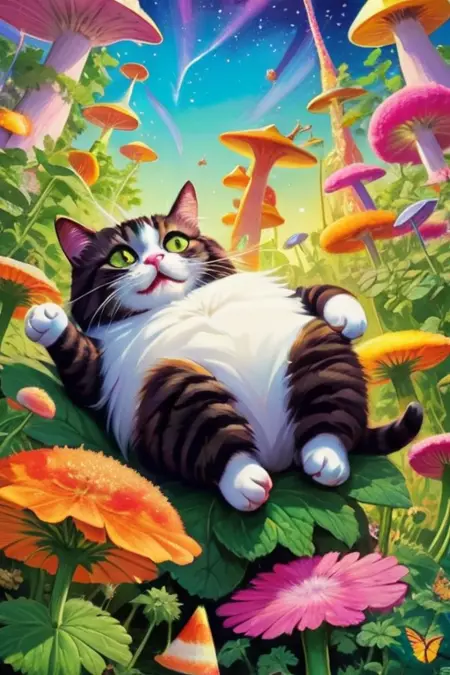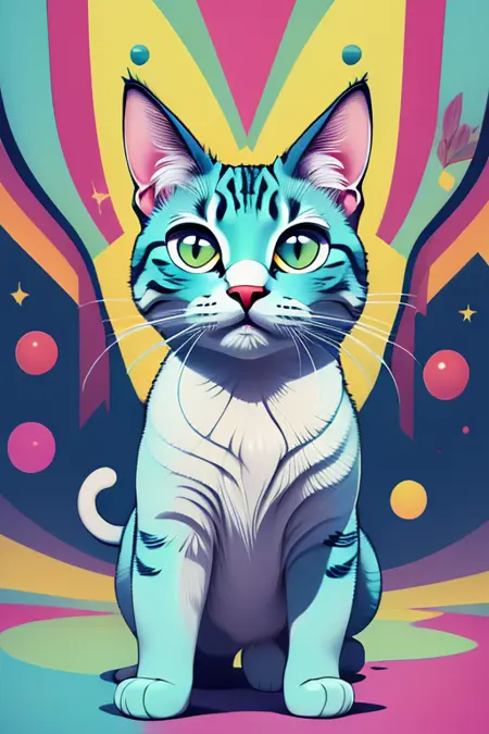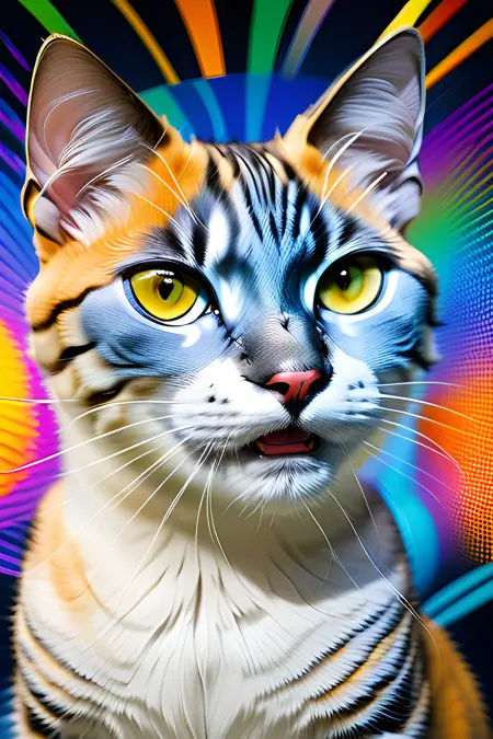 지난번에 pixai에서 제작한 제 또 다른 사랑하는 모델로, 색색의 카오스적이고 환상적인 고양이 생성기에 완전히 독립적으로 작동하도록 설계되었습니다!