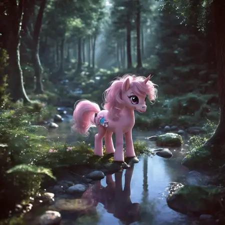 마이 리틀 포니와 유니콘을 "실제 생활" 같은 장면에 배치하려 했으나, 실제로는 MLP, 유니콘, 페가수스 및 말의 이미지를 생성한다. 이 생물의 이름은 MLPIRL이며, 프롬프트에서 "객체"로 사용하라.