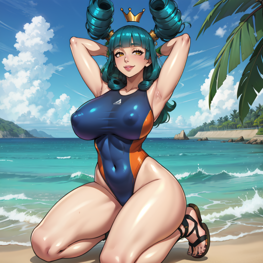 Recommended use range: 0.6 - 1.0. Training data was a bit limited on this one, but I think it still captures the essence of the goddess. In general I would go for 1.0 - 0.8, if you're going for a purer look from the game, and lower if you're going for more creative outfits or you're getting too much background interference. In general this model is (obviously) biased towards greenery, so I recommend putting gazebo background, trees, thorny totems in the negative prompts. Her outfit is revealing clothes, bare shoulders, covered navel, frills, frilled skirt.